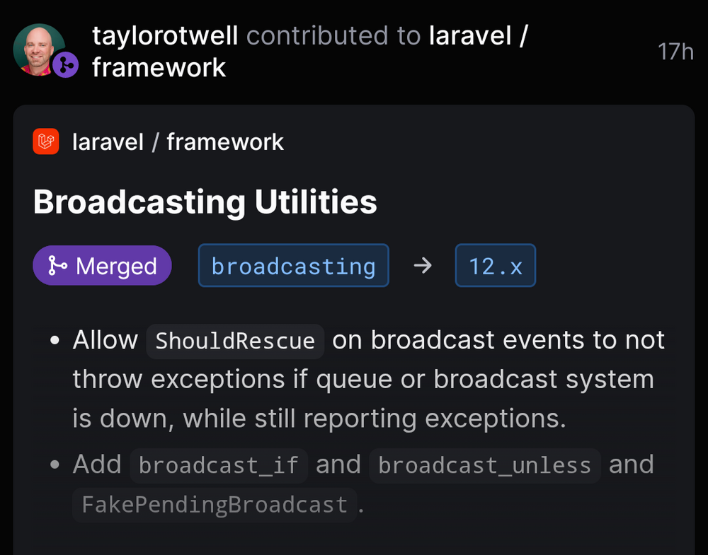 Punyapal Shah ⚡ Verified @MrPunyapal In response to @MrPunyapal github.com/laravel/framework/pull/55967 • • 83 • 6mos ago • Delete Question Are you sure you want to delete this question? Cancel Delete No matching results... Searching... / 1000 Send Poll Options Add option Poll Duration Select duration 1 day 2 days 3 days 5 days 1 week